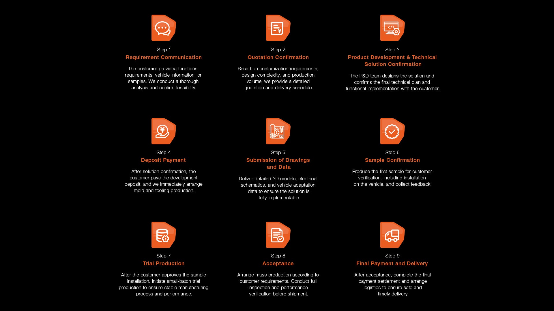 Our R&D team is composed of experienced experts from the automotive electronics and parts industry, with strong capabilities in vehicle integration and development. We provide professional installation guidance, upgrade solutions, and comprehensive technical support.