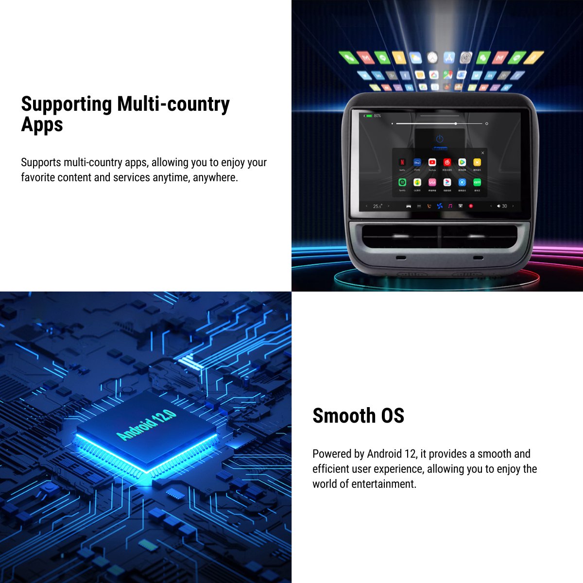 - Smooth OS - Powered by Android 12, it provides a smooth and efficient user experience, allowing you to enjoy the world of entertainment.